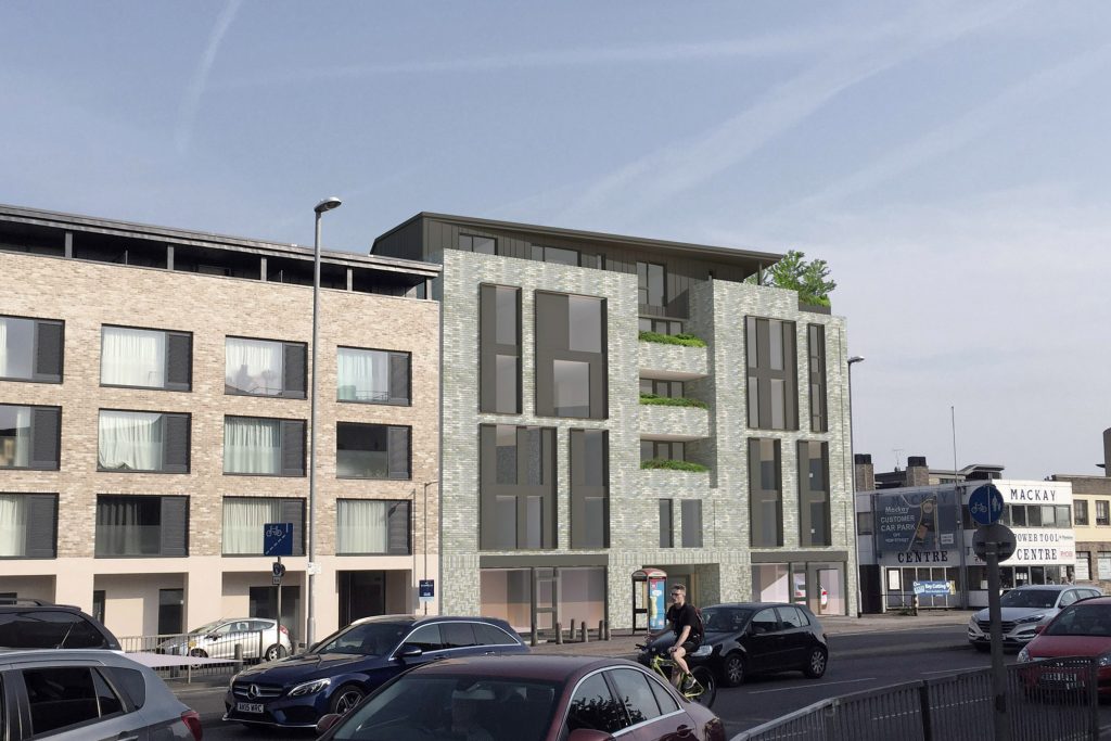 Architecture drawing of proposed studio apartments – Street view
